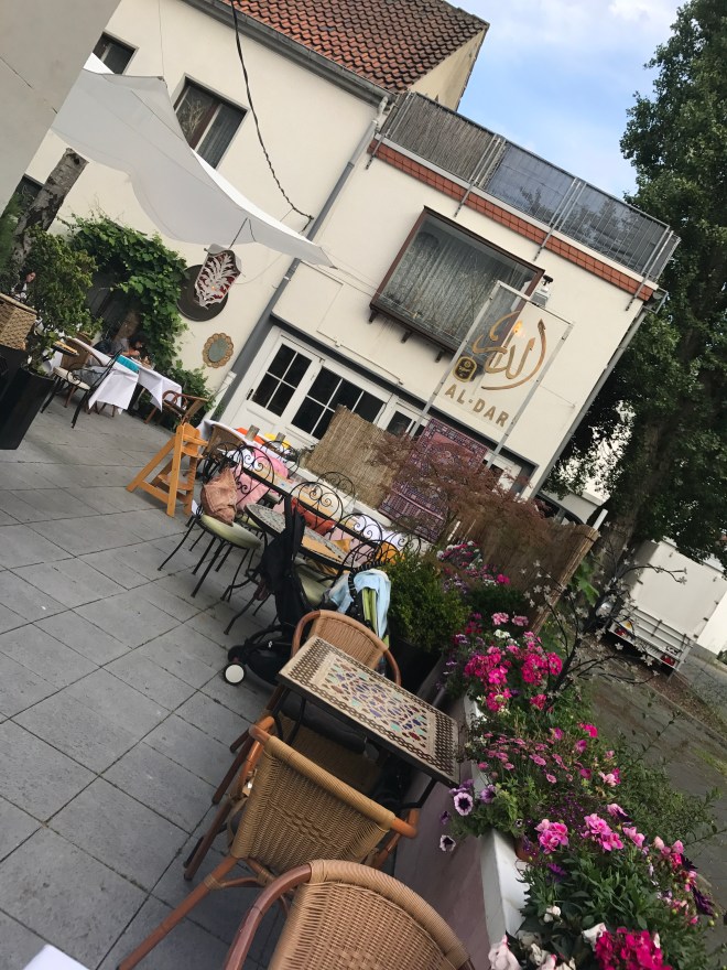 Das Al-Dar in der Königsstraße verwöhnt seine Gäste auf zwei Etagen. Die hohen Decken in den Räumen geben das Gefühl der Weite und die ästhetische Wandmalerien erinnern an die Märchen aus 1001 Nacht. Der Orient – so viel mehr als nur Krieg und Diktaktoren, sondern Quelle wunderbarer Küche mit raffinierten Speisen und lieblichen Desserts. An lauen Sommerabenden lädt der mit Blumen und Sonnensegeln gestaltete Innenhof zu einem gemütlichen Abend ein.
