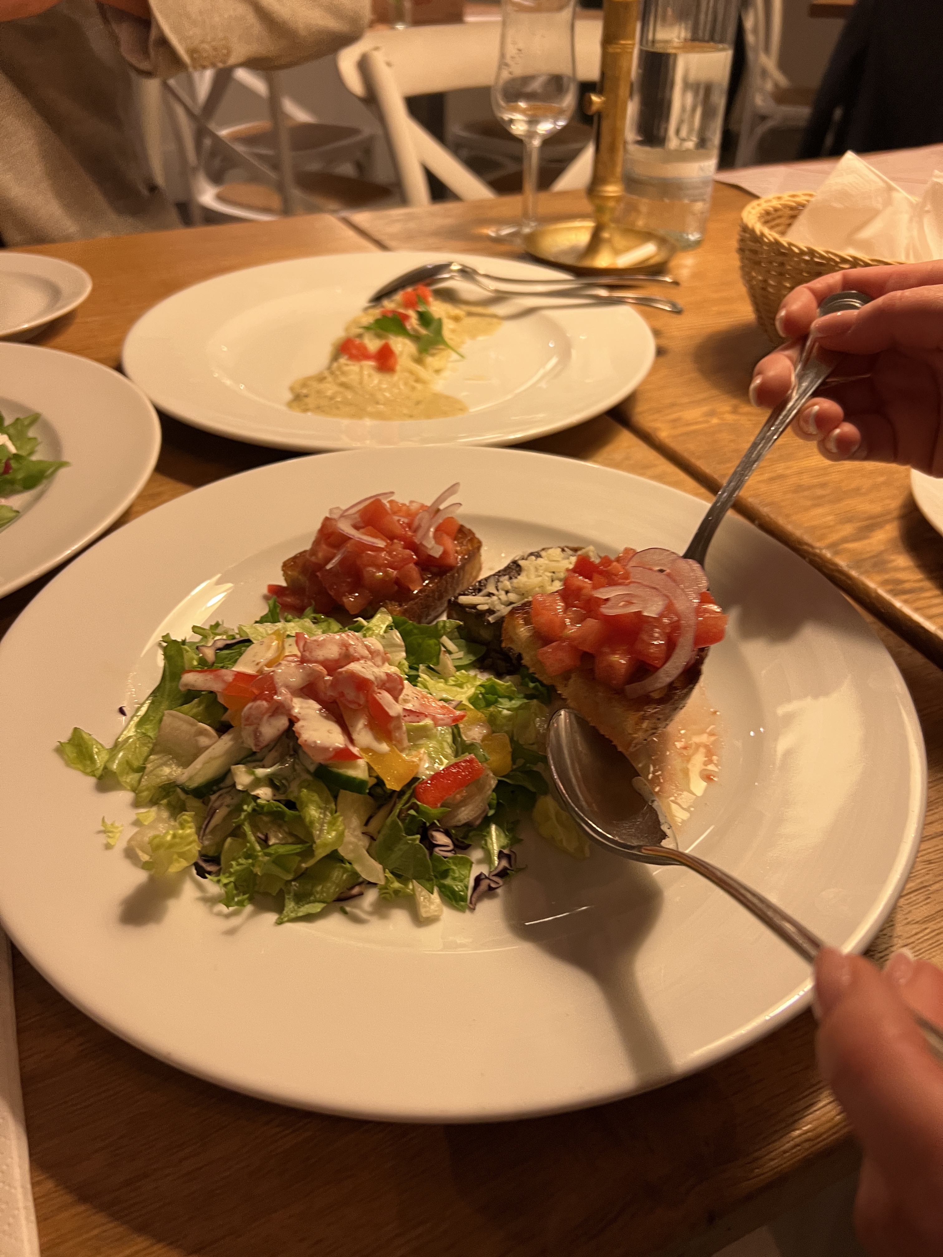 Wie auch die Preise auf der Karte, auf der sich hauptsächlich deutsche Klassiker wie Currywurst-Pommes, Schnitzel, aber auch Senfeier und Rinderroulade wiederfinden. Unter den Vorspeisen kommen auch mediterrane Einflüsse zur Geltung. Carpaccio, Bruschetta Mista und Steinpilz-Ravioli erinnern an den Besuch beim Italiener und erweitern die Auswahl. Das macht es unkompliziert – findet doch jeder Gast hier etwas für seinen Gusto. Wem die deutsche Kost zu schwer ist, kann aus vier verschiedenen Salaten wählen oder sich für vegetarische Gerichte – Steinpilz- oder Ziegenkäseravioli als Hauptgang und Gemüse mit Bratkartoffeln – entscheiden. Nur Veganer kommen im Teichhûs auf den ersten Blick nicht auf ihre Kosten. Auf Nachfrage zaubert Chefkoch Tony aber sicher gern ein rein-pflanzliches Gericht. Ansonsten ist im Teichhûs eher schlemmen auf traditionelle Weise angesagt und das am besten mit Familie oder Freunden.