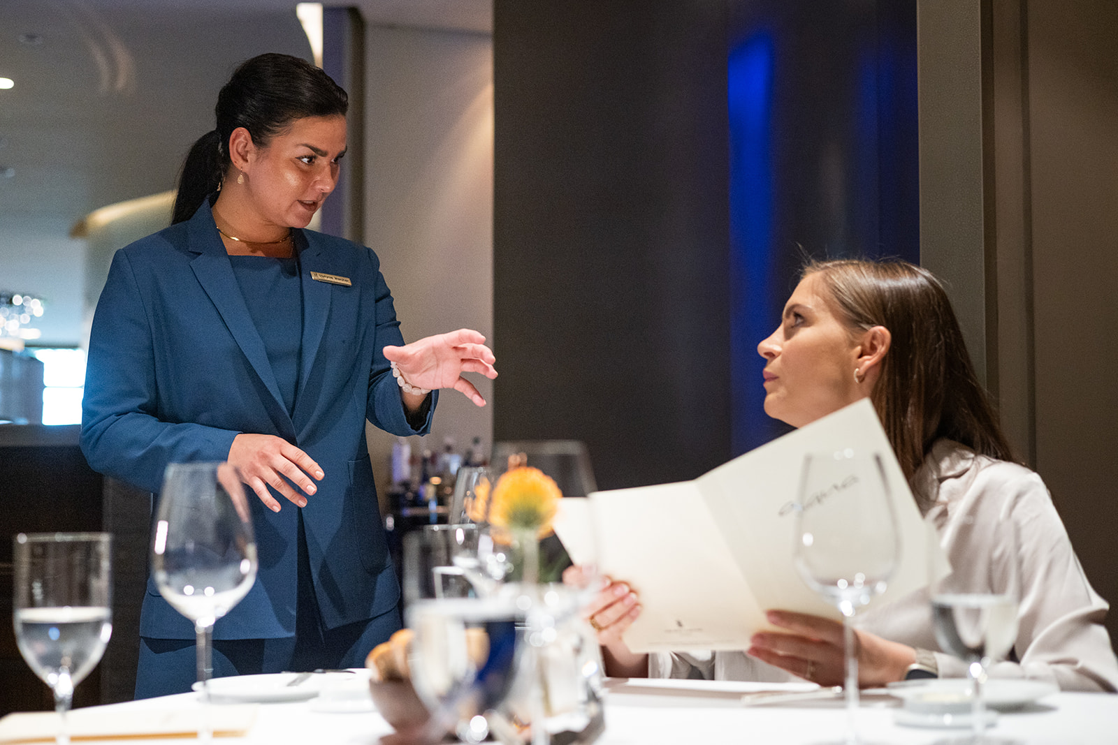 Annet Hänisch kümmert sich um die Reservierungen der Gäste. Sie ist es auch, die eine Woche vorher beim Gast anruft und fragt, ob Unverträglichkeiten bestehe, vegetarische Gerichte gewünscht sind und ob es bei der Uhrzeit bleibt. Bei einem Besuch im Aqua soll nichts dem Zufall überlassen werden.