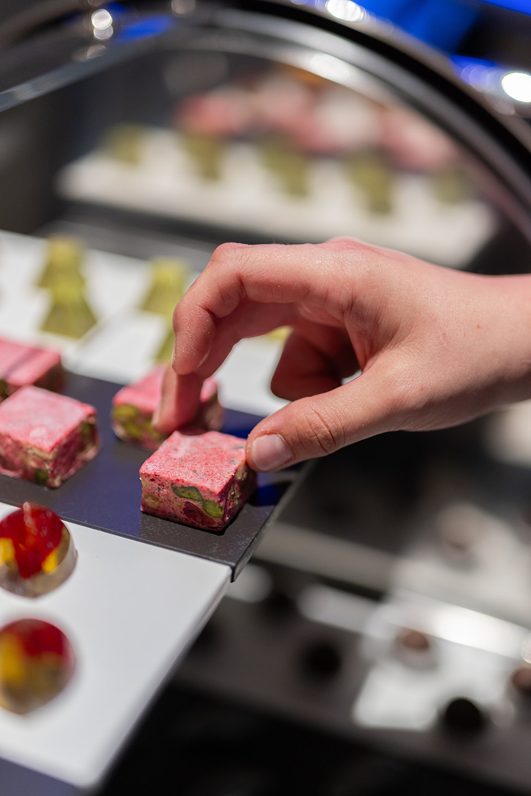 Pralinen auf der hauseigenen Patisserie werden uns als Gastgeschenk mit nach Hause gegeben sind. Ob sie dort jemals angekommen sind?