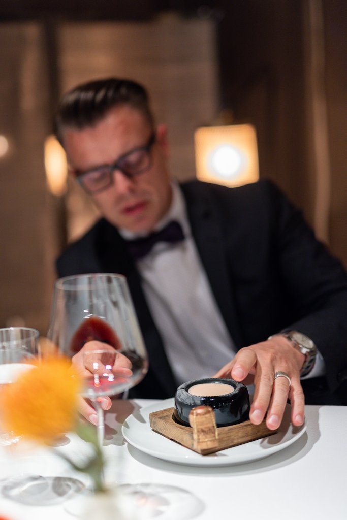 Wer uns hinter und vor dem Herd an diesem Abend verwöhnt hat, möchten wir nicht unerwähnt lassen: In der Küche wirken acht Köche. Darunter Sous-Chef Marvin Böhm. Die Posten rotieren – für den Krankheitsfall und gegen die Routine. Zwei Pattissière sind nebenan für die Pralinenkunst zuständig. Sven Elverfeld sagt über seine Mannschaft an diesem Abend: „Ich bin dankbar mit so einem tollen Team zusammenzuarbeiten, wo jeder eine Schraube im Getriebe ist. Jeder Mitarbeiter ist essentiell, damit dieses Uhrwerk läuft.“