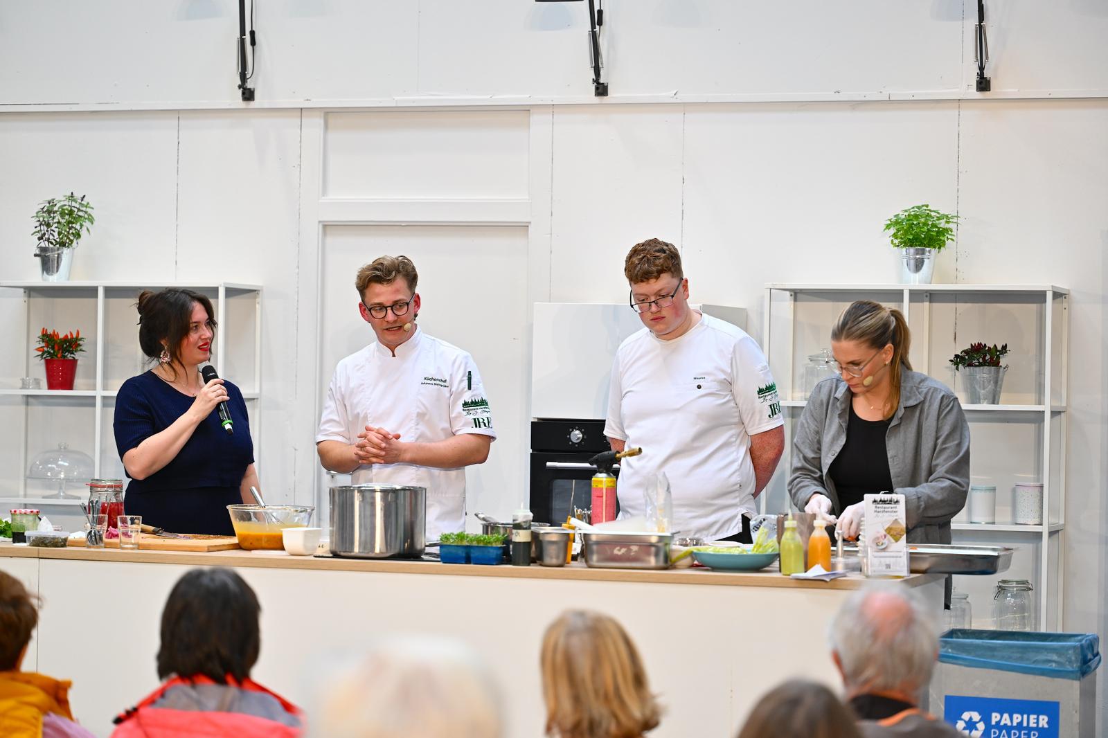 Was für ein Getümmel auf der diesjährigen Infa Hannover. Jener Messe, die längst keine Hausfrauen-Messe mehr ist, sondern sich zu einer Food- und Lifestyle-Messe gemausert hat. Erstmal durften wir in diesem Jahr von Gastrofee.com mitmischen. In der Showküche in der Markthalle (Halle 21) kamen wir mit Johannes Steingrüber vom Restaurant Harzfenster und seinen Beikoch Maurice zusammen, um auf dem Kochfeld zum Thema „Fine Dining für Zuhause“ zu zaubern.