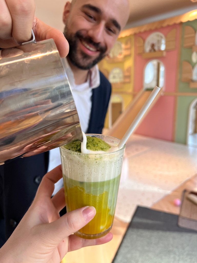Hier können Eltern selbst zubereiteten Speisen wie Waffeln, belegte Bagels, Obst- und Gemüsesticks in Ruhe verzehren. Tee und Wasser sind im Preis mit inbegriffen. Zusätzlich können noch Kaffeespezialitäten und Kakao bestellt werden. Das Serviceteam versorgt alle Gäste sehr zugewandt und freundlich. Wir möchten euch auf jeden Fall die hausgemachten Kuchen empfehlen. Vor allem der Zitronenkuchen hat es den Gastrofeen angetan.